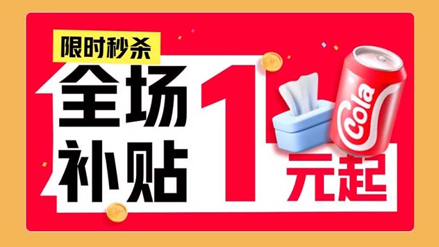 1元限时秒杀活动,全场补贴,1元发货